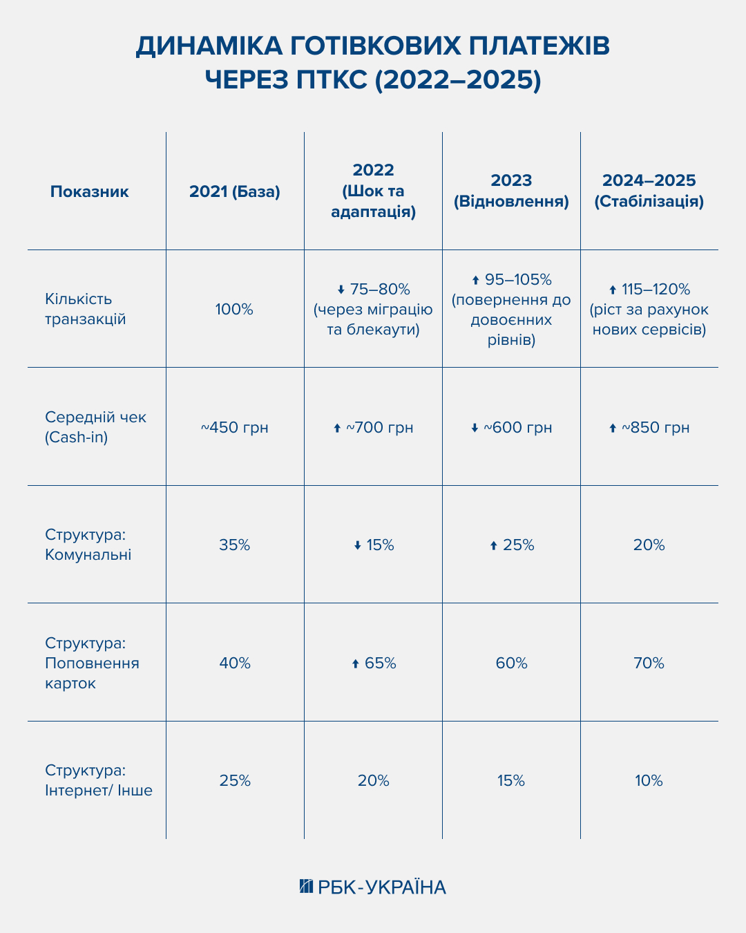 Паралельно кардинально змінилася структура платежів. Якщо у 2021 році поповнення карток становило 40% операцій через термінали, то у 2024–2025 роках цей показник зріс до 70%. Частка комунальних платежів скоротилася з 35% до 20%, а оплата інтернету та інших дрібних послуг – з 25% до 10%.