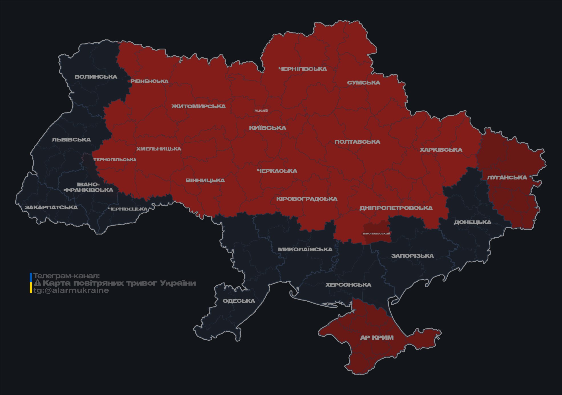 Російський агресор знову запустив у напрямку України дрони-камікадзе типу "Шахед". В низці областей оголошено повітряну тривогу та є ризик ударів.