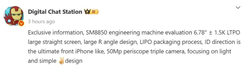 Крім того, інформатор згадує потрійну 50-мегапіксельну камеру з перископічним об’єктивом, хоча ранні витоки вказували на наявність 200-мегапіксельного телевізора. Серед інших неофіційних подробиць – акумулятор ємністю не менше 6500 мАг.