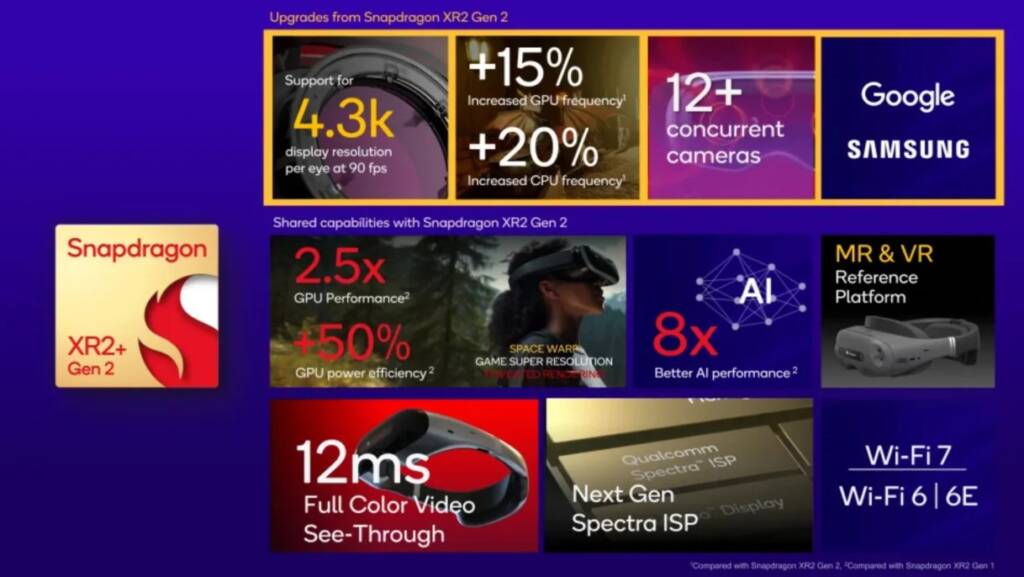 Ці показники помітно нижчі за сучасні флагманські смартфони, що пояснюється використанням ядер Cortex-A78C – архітектури, що дебютувала ще у 2020 році. Проте гарнітура орієнтована не на максимальну процесорну продуктивність, а на високу графічну потужність, яка необхідна для обробки візуального контенту XR.